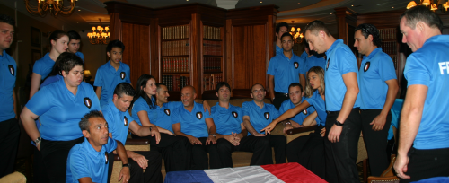 La délégation française vient de démarrer la compétition ce matin après une arrivée en fin de journée avant-hier. Cela a permis aux joueurs de prendre leurs marques et de se reposer une journée avant d’entamer les hostilités. Le complexe hôtelier est fort agréable et chaque équipe dispose d’un hébergement collectif permettant de faire des repas en groupe et ainsi renforcer et tisser les liens entre les joueurs.
